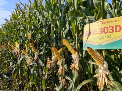 裕豐303具有廣泛的適應(yīng)性和穩(wěn)定的豐產(chǎn)性。它對不同土壤類型和氣候條件都有較好的耐受性,無論是在東北的黑土地,還是華北的黃土地,抑或是西北的干旱地區(qū),都能展現(xiàn)出良好的生長態(tài)勢。在豐產(chǎn)性方面,裕豐303的穗大粒多,籽粒飽滿,千粒重高,經(jīng)過多年的田間試驗(yàn)和大規(guī)模推廣種植,平均畝產(chǎn)較對照品種有顯著提高。同時,它還具備較強(qiáng)的抗倒伏能力,在生長后期即使遭遇大風(fēng)等惡劣天氣,也能保持較好的植株形態(tài),減少產(chǎn)量損失。隨著裕豐303D、裕豐303R、裕豐303H的快速推廣,裕豐303的品種優(yōu)勢更加突出,2023年-2025年生物技術(shù)項(xiàng)目供種數(shù)量裕豐303均居首位,也從側(cè)面印證了裕豐303巨大的產(chǎn)品優(yōu)勢,其中裕豐303D被農(nóng)業(yè)農(nóng)村部列為2025年玉米主導(dǎo)品種。2023年10月7日,內(nèi)蒙古自治區(qū)農(nóng)牧廳組織的專家組在寧城測出玉米新品種裕豐303D比常規(guī)品種畝產(chǎn)量提高21.5%;2024年9月28日,內(nèi)蒙古自治區(qū)生物育種測產(chǎn)小組在內(nèi)蒙古自治區(qū)開魯縣開魯鎮(zhèn)對裕豐303D進(jìn)行田間測產(chǎn),比對照品種每畝高出247公斤,增產(chǎn)幅度33.4%,增產(chǎn)效果顯著。